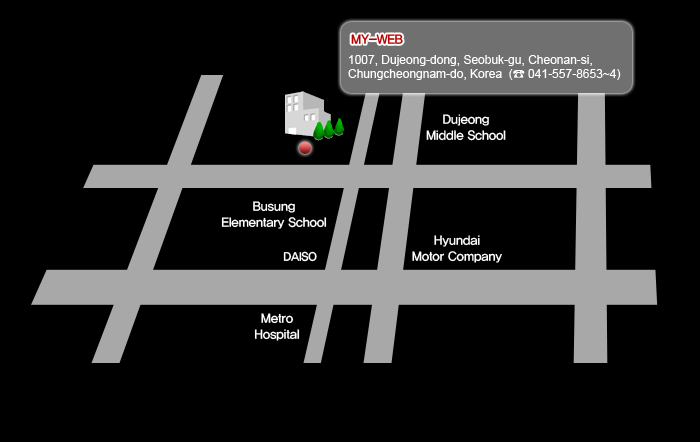 ADDRESS : 1007, Dujeong-dong, Seobuk-gu, Cheonan-si, Chungcheongnam-do, Korea | TEL : 041-557-8653~4 | FAX : 041-557-8655